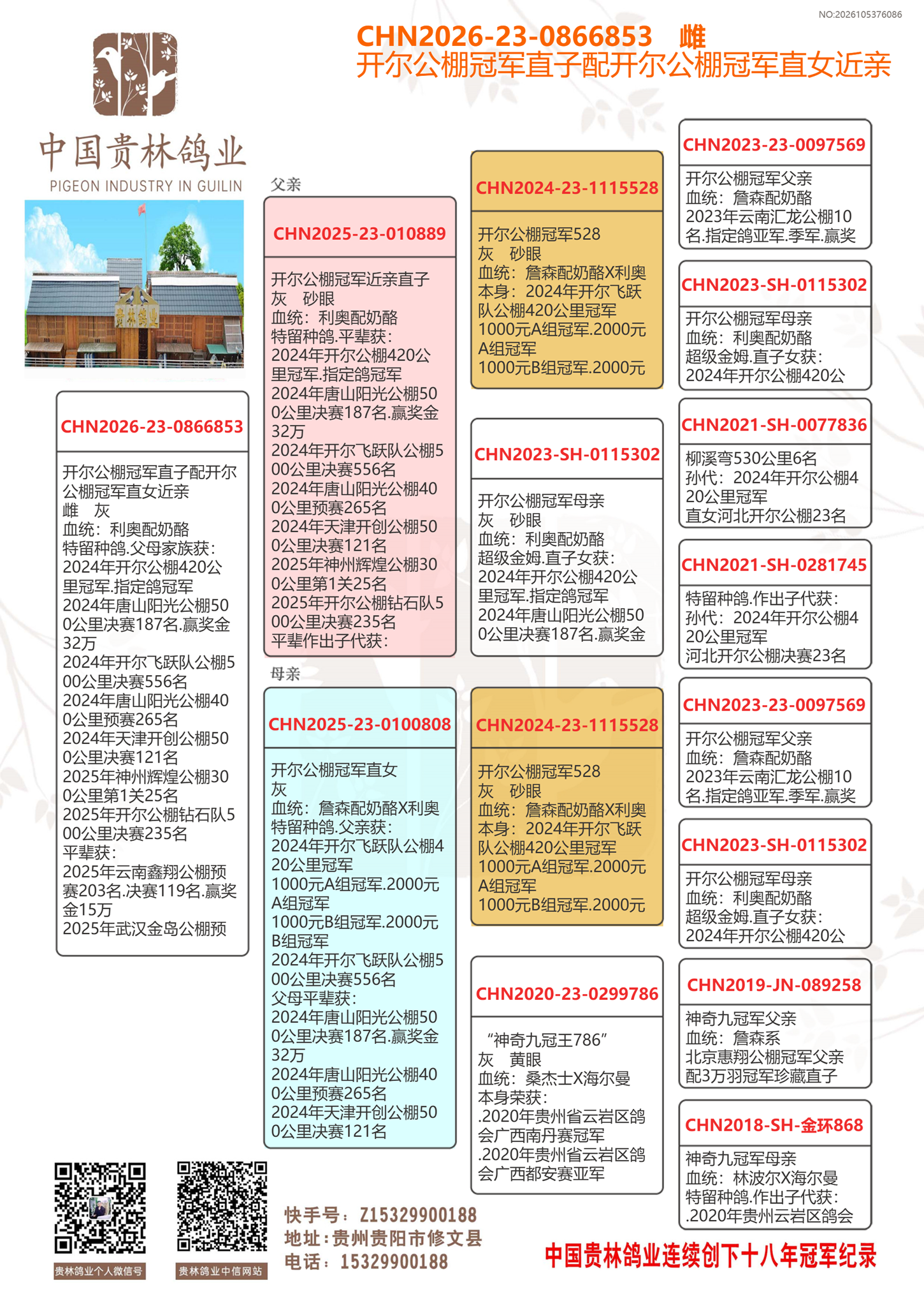 ★贵林鸽业支援全国鸽友从2010年至2025年连续十五年作出冠军.亚军.季军前十名高位好成绩.感谢大家鸽友一直支持。